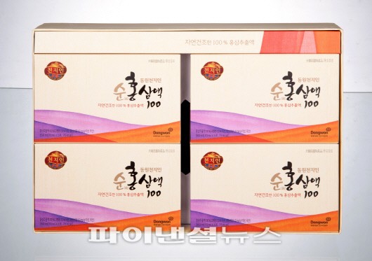 동원 F&B의 홍산 브랜드 천지인 역시 올 추석을 앞두고 가장 높은 매출을 기록한 제품으로 파우치형 액상 제품인 '천지인 6년근 순홍삼액 20포'가 꼽혔다.