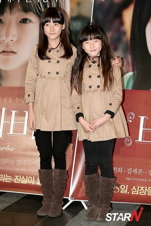 배우 김새론과 김아론이 22일 오후, 서울 종로구 신문로 2가 광화문 인디스페이스에서 개최 된 영화 '바비' VIP 시사회에 참석하여 포토타임을 갖고있다.