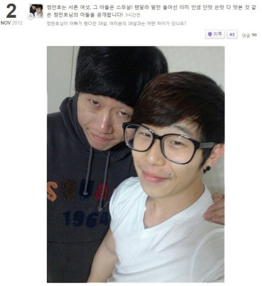 정만호는 최근 tvN의 '코미디 빅리그'(이하 코빅) 공식 미투데이에 첫째 아들과 함께 찍은 사진을 공개했다. 그동안 '코빅'에서 대학생인 아들을 소재로 독한 개그를 선보였던 탓에 네티즌들의 관심이 쏠렸다.