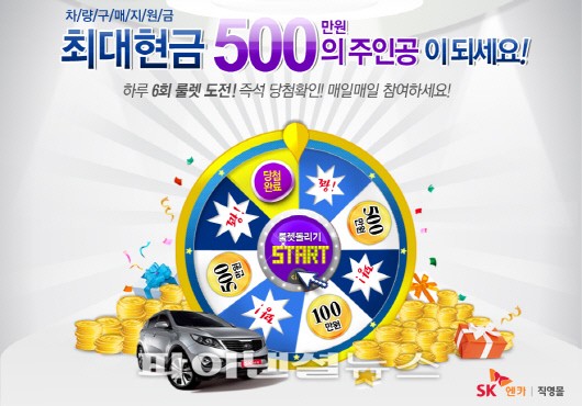 이번 이벤트는 SK엔카 직영몰(www.encardirect.com)에서 룰렛 돌리기에 참여하는 방식으로 진행되며 당첨금은 각 500만원, 200만원, 100만원이다.