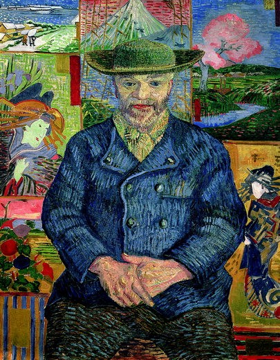 '탕귀 영감'은 한때 고흐를 매료시켰던 일본 목판화 우키요에의 영향이 고스란히 드러나는 작품이라는 점에서도 흥미롭다. 안도 히로시게의 목판화를 그대로 베낀 '비가 오는 다리' 같은 작품을 내놓기도 했던 고흐는 '탕귀 영감'에선 그의 화실에 차곡차곡 쌓아놓았던 우키요에를 배경으로 그려넣었다.