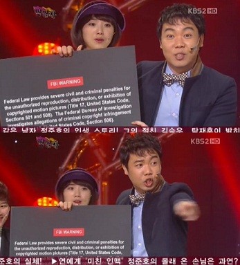 그는 'FBI WARNING'이라는 제목의 경고 문구가 적힌 판넬을 보이며 "이걸 보고 입을 실룩대면 야동을 보는거다"고 말해 웃음을 자아냈다.