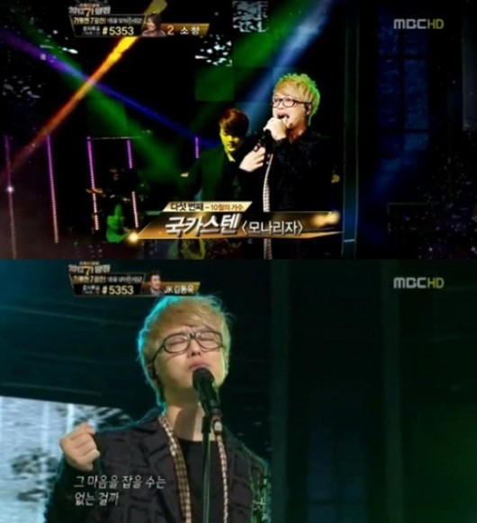 25일 방송된 MBC ‘일밤-나는 가수다2(이하 나가수2)’에는 ‘슈퍼 디셈버2012’ 가왕전이 펼쳐진 가운데 ‘모나리자’를 열창한 국카스텐이 1위의 영광을 차지했다.