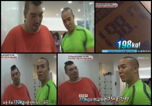 이어 그는 체중측정을 해야 하는 시간이 오자 긴장한 눈치를 보였으며 체중측정 결과, 198kg의 몸무게가 나와 놀라움을 자아냈다.