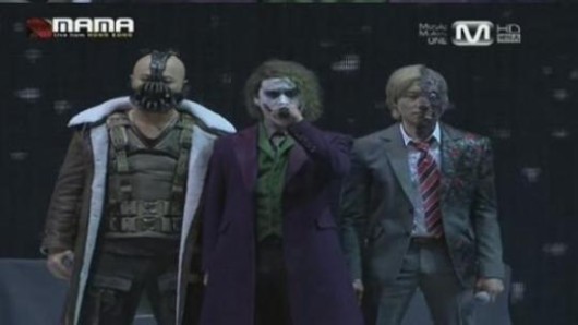 지난달 30일 홍콩 컨벤션 & 익스히비션 센터에서 열린 2012 'MAMA'에서 에픽하이의 타블로와 미쓰라, 투컷은 영화 '다크나이트'속 캐릭터인 조커와 베인, 투페이스 분장을 하고 등장했다.