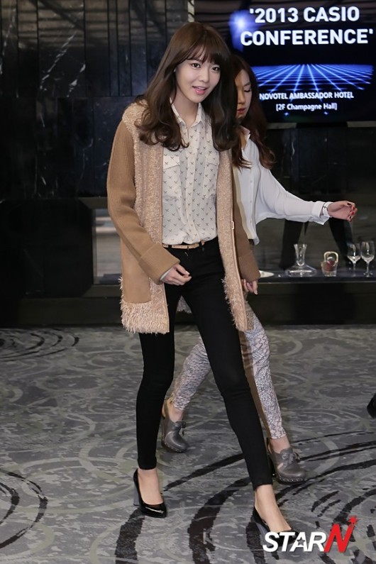 걸그룹 소녀시대의 멤버 수영이 4일 오전, 서울 강남구 역삼동 노보텔 에베서더 강남에서 개최된 ‘EVOLUTION OF CASIO 2013(에볼루션 오브 카시오)’행사에 참석하여 포즈를 취하고 있다.