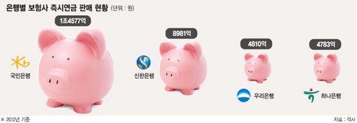 특히 판매 채널이 약세인 중소형사들은 다른 상품들도 팔아주는 은행이 즉시연금을 팔라고 요구할 경우 이를 지속적으로 거부하기도 어려운 현실이다. 이 때문에 마지못해 판매에 나서는 경우도 있다는 게 업계의 설명이다.