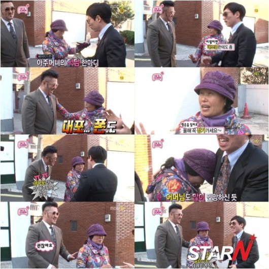 이날 유재석의 옵션으로 달력 배달을 함께 하기로 한 데프콘은 그와 함께 ‘범죄와의 전쟁’ 의상을 입고 등장해 모두의 시선을 집중시켰다.
