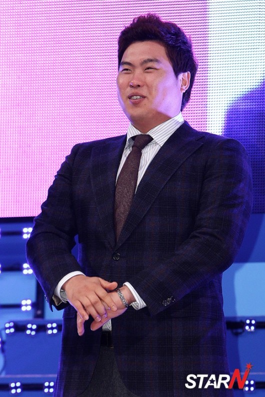 류현진 선수 'MLB 진출 기념 환송회'가 5일 오후 대전 한밭 종합운동장 내 한밭체육관에서 진행된 가운데 을 류현진 선수가 미소를 짓고 있다.