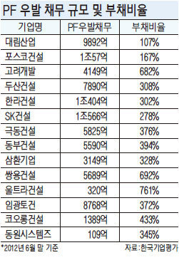 한국신용평가에 따르면 지난 2012년 6월 말 기준 프로젝트 파이낸싱(PF)ABCP 잔액은 17조9000억원으로 1년 내 만기 도래하는 물량이 13조8000억원에 달한다.