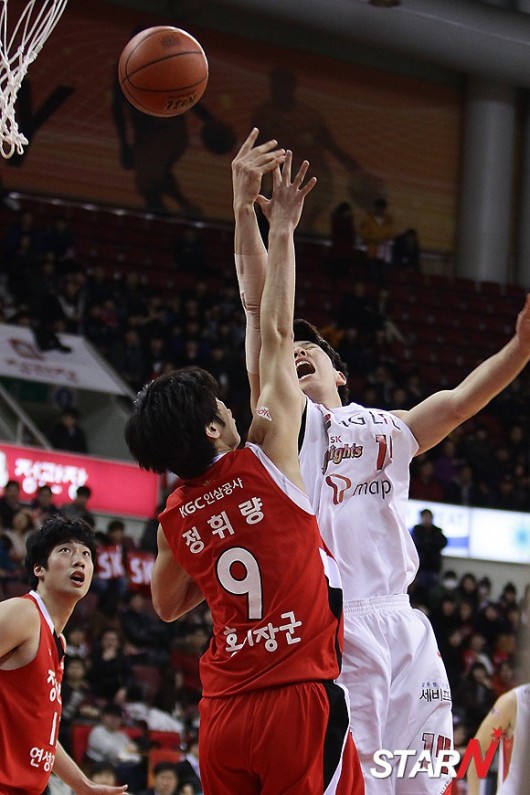 '2012-2013 KB국민카드 프로농구' 안양 KGC 인삼공사와 서울 SK 나이츠의 경기가 11일 오후 안양실내체육관에서 열린 가운데 SK의 최부경이 슛을 시도하고 있다.