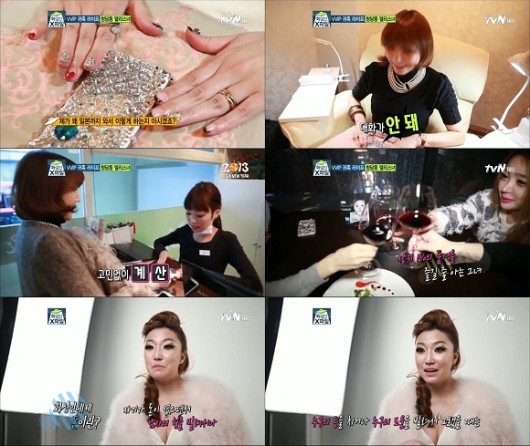 이날 방송에서 청담동 앨리스녀는 핸드폰튜닝과 네일아트를 받기 위해 일본을 방문하고, 와인을 마시는데 350만원을 지출하는 등 자신이 하는 일에 대해서 금전적인 지출에는 전혀 구애받지 않는 모습을 보여줬다.
