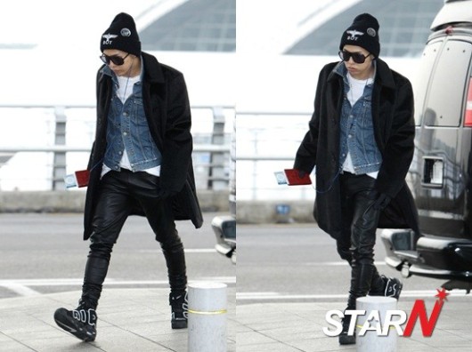 이날 지드래곤은 검은 비니를 쓰고 같은 색상에 코트와 팬츠를 매치해 ‘올블랙’패션을 선보였으며 청자켓으로 포인트를 줘 지루함을 피하는 개성넘치는 공항패션을 선보였다.