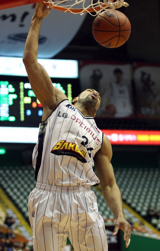 LG는 18일 부산 사직체육관에서 열린 ‘2012-2013 KB국민카드 프로농구’ KT와의 경기서 연장 종료 직전에 터진 아이라 클라크의 덩크슛으로 79-77 승리를 거뒀다.