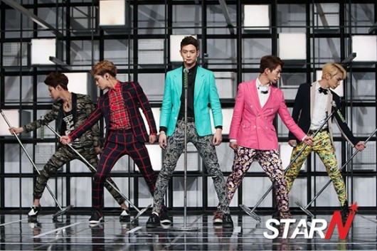 그룹 샤이니가 21일 오후, 서울 상암동 CJ E&M 센터에서 진행된 Mnet 'M!Conountdown (엠카운트다운/엠카, 323회)' 생방송에 참석하여 무대를 펼치고 있다.