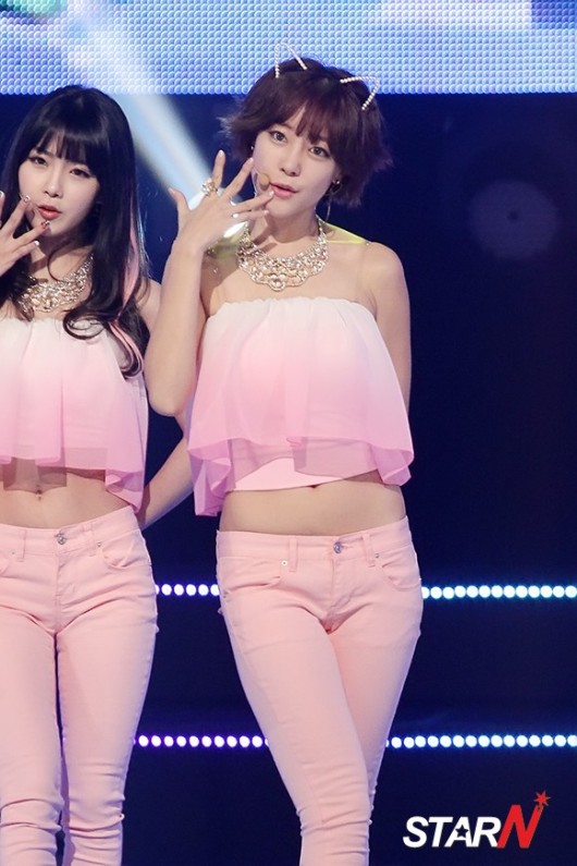 걸그룹 레인보우의 우리가 21일 오후, 서울 상암동 CJ E&M 센터에서 진행된 Mnet 'M!Conountdown (엠카운트다운/엠카, 323회)' 생방송에 참석하여 무대를 펼치고 있다.