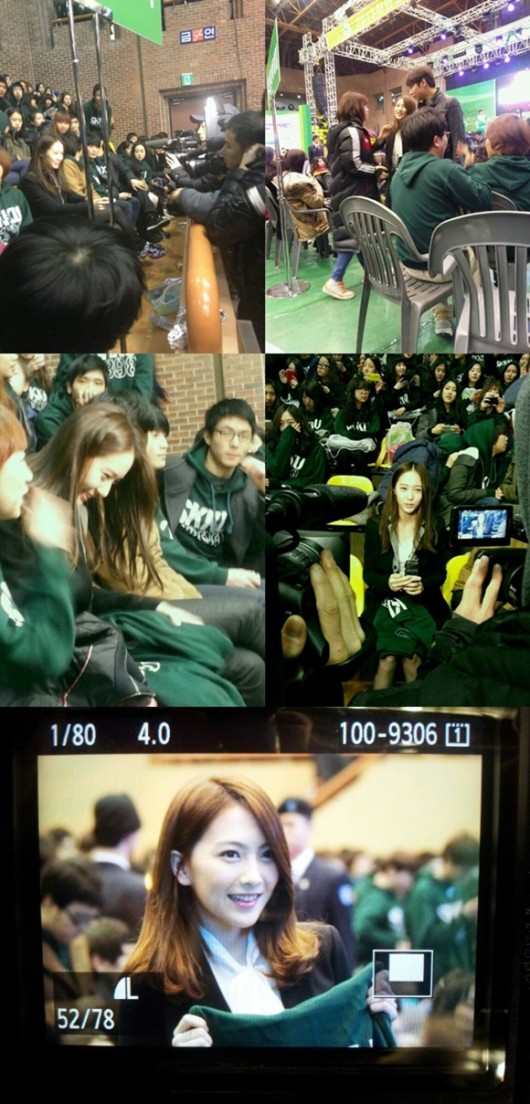 27일 각종 온라인 커뮤니티 게시판에는 당일 오전 수원시 장안구 성균관대학교 자연과학캠퍼스 ‘2013학년도 신입생 입학식’에 참석한 카라의 강지영과 에프엑스의 크리스탈 직찍이 게재됐다.