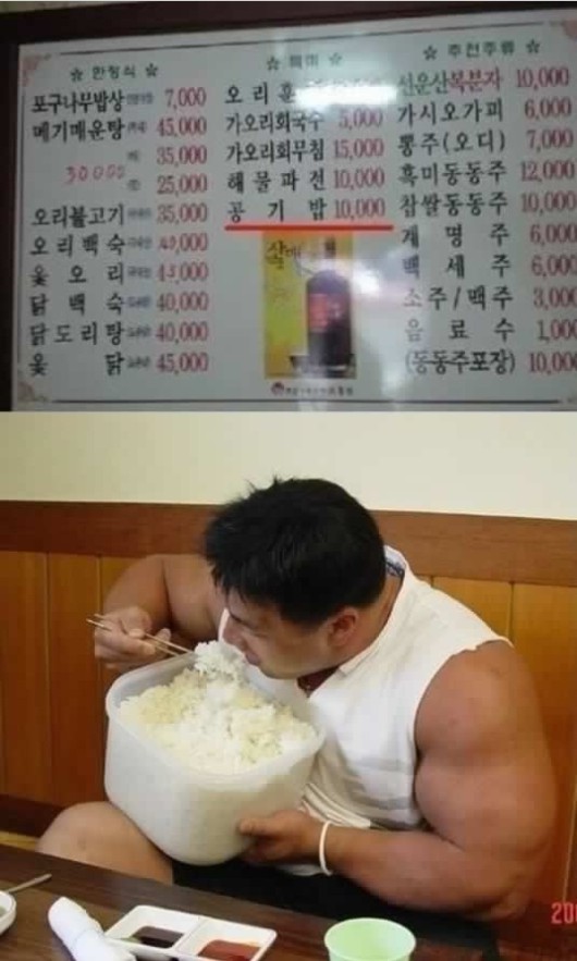 ‘한 그릇에 만원 공기밥’ 사진이 공개돼 화제다.