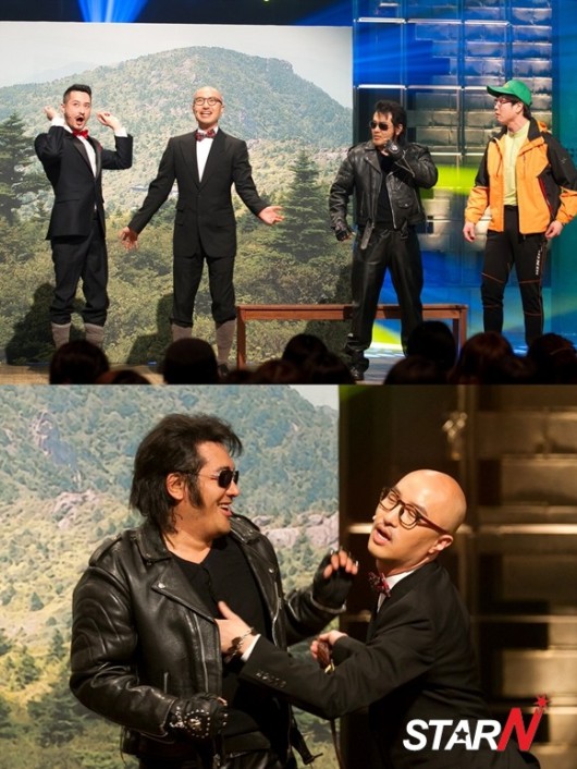 방송에 앞서 공개된 사진 속 홍석천은 까만 보잉 선글라스와 두꺼운 가죽점퍼를 입고 ‘상남자’의 아우라를 내뿜고 있는 김보성의 점퍼 속에 손을 넣어 가슴팍을 어루만지고 있다.