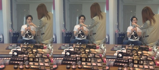 공개된 사진 속 조정석은 화장대 앞에 앉아 스태프에게 메이크업을 받고 있으며, 그 와중에 핸드폰을 이용해 셀카를 촬영하고 있다.
