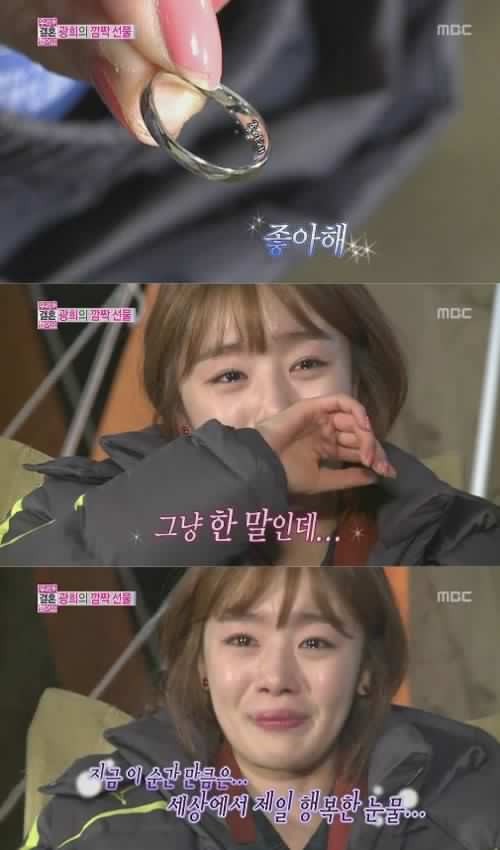 특히 광희는 “저번에 선화가 반지 갖고 싶다고 해서 준비했다”며 “안에 뭐라고 써 있는지 보라”고 말했고 반지 안에는 '좋아해'라는 글씨가 새겨 있었다.