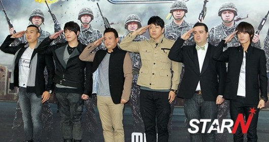 ‘일밤-진짜 사나이’의 출연진이 9일 오후 경기도 일산에 위치한 MBC 드림센터에서 열린 기자간담회에 참석해 포즈를 취하고 있다.