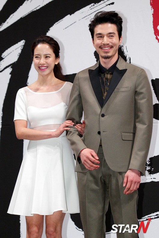 배우 송지효와 이동욱이 17일 오후 서울 강남구 논현동에 위치한 임페리얼 팰리스 호텔에서 진행된 KBS 수목특별기획드라마 '천명:조선판 도망자 이야기'의 제작발표회에 참석해 포즈를 취하고 있다.