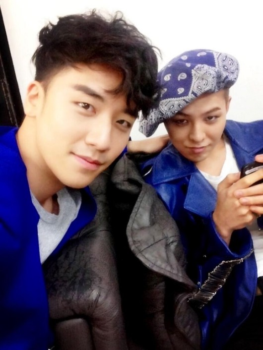 공개된 사진 속에는 승리와 지드래곤의 모습이 담겨있으며, 둘 모두 파란 상의를 입고 ‘깔맞춤 패션’을 선보이고 있다.