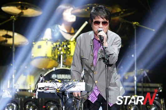 가수 조용필이 23일 오후 서울 송파구 방이동에 위치한 올림픽공원에서 진행된 19집 ‘프리미어 쇼케이스-헬로(Hello)’에서 화려한 공연을 선보이고 있다.