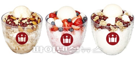 '더블샷 커피빙수'는 '더블샷' 에스프레소와 국내산 팥, 시원하고 부드러운 우유얼음이 어우러진 커피 빙수다. 주문 즉시 바로 추출한 에스프레소를 사용해 커피 본연의 맛과 향을 즐길 수 있고, 아몬드와 그레놀라 등 견과류를 더해 더욱 고소하고 풍성한 맛을 느낄 수 있다. '요거트 베리빙수'는 국내산 딸기와 블루베리를 넣은 과일 빙수다. '그레놀라 팥빙수'는 100% 국내산 팥과 다양한 곡물을 혼합한 유기농 그레놀라를 사용해 고소한 맛이 느껴지는 것이 특징이다.