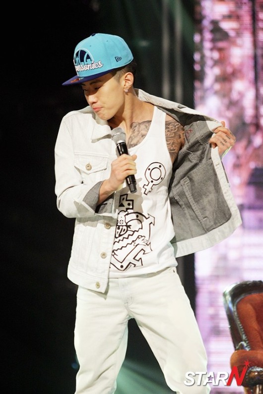 박재범이 최근 서울 광진구 광장동에 위치한 유니클로 악스 (Uniqlo-Ax)에서 진행된 MBC MUSIC '쇼! 챔피언(Show! Champion/58회)'에서 열정적인 무대를 선보이고 있다.
