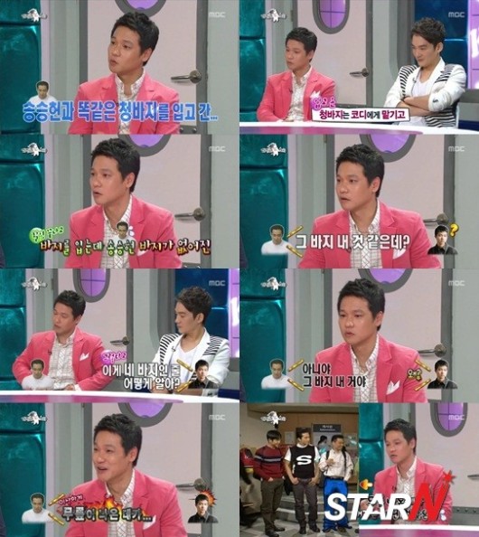 이에 송승헌이 홍경인이 입은 바지를 보고 "그 바지 내 바지 같은데?"라고 물었고 홍경인이 "응? 이게 네 바진지 어떻게 알아?"라고 의아해했다.