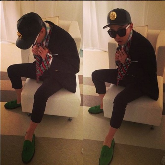 공개된 사진 속 지드래곤은 수트에 모자, 선글라스를 쓴 특유의 패션으로 넥타이를 매고있는 모습이 담겨있다.