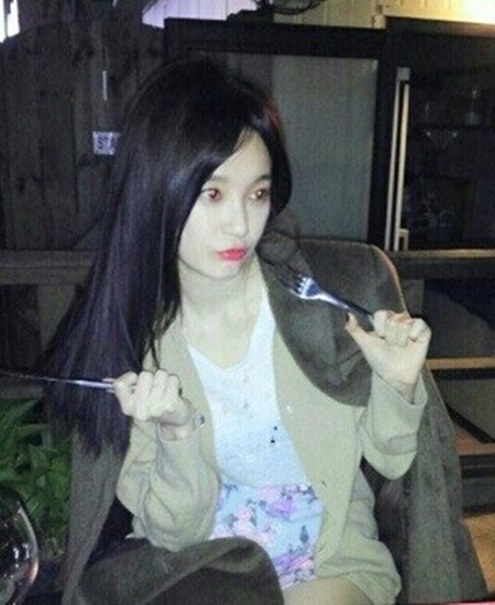 특히 입술을 살짝 내밀고 어딘가를 응시하는 강민경은 귀여운 표정과 함께 적목현상으로 눈이 붉게 나와 뱀파이어를 연상케하고 있는 것.