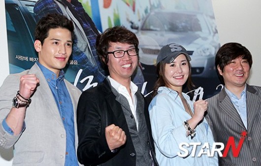 영화 '어디로 갈까요'의 감독과 배우들이 6일 서울 중구 태평로에 위치한 스폰지 하우스에서 진행된 시사회에 참석해 포즈를 취하고 있다.