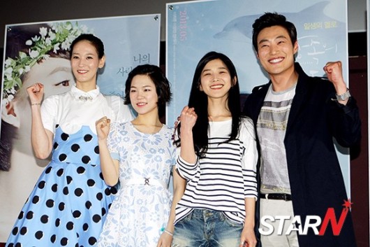 배우 이희준, 이영진, 한예리, 강진아 감독이 6일 오후 서울 중구 소공동 롯데 시네마 에비뉴엘에서 진행된 영화 ‘환상속의 그대’ 언론시사회에 참석해 화이팅을 외치고 있다.