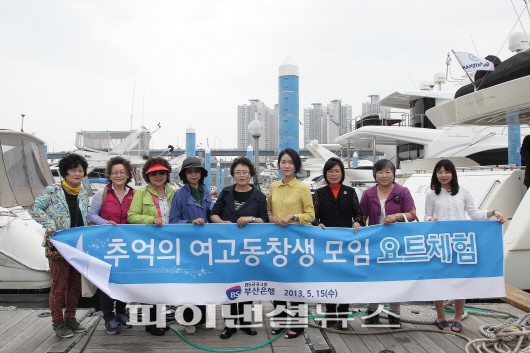 직장생활 및 다양한 동아리 활동과 모임활동을 지원하는 부산은행의 대표 상품인 '오징어통장(오랫동안 징그럽게 어울리자 의 줄임말)' 우수모임 (수신실적 상위 50개 모임중 추천을 통해) 2개팀, 12명을 초청해 '추억의 여고동창생 모임(요트체험전)'을 가졌다.