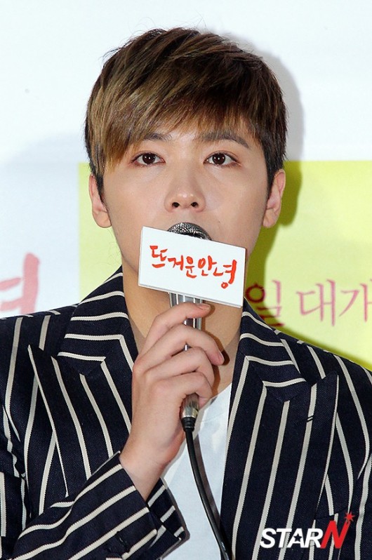 FT아일랜드의 이홍기가 21일 오후 서울 광진구 자양동에 위치한 롯데시네마 건대입구에서 진행된 영화 ‘뜨거운 안녕’ 시사회에 참석해 취재진의 질문에 답을 하고 있다.