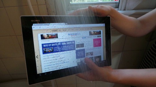 태블릿Z의 또 하나의 자랑인 카메라에는 소니의 최신 디지털 이미징 기술인 '엑스모어(Exmor)'가 적용돼 어두운 곳에서도 다른 태블릿보다 훨씬 깨끗한 사진을 얻을 수 있었다. 전면 810만, 후면 220만 화소의 카메라 해상도는 동급 태블릿 가운데 최고 수준이다. 태블릿Z에서 빼놓을 수 없는 방수기능도 직접 실험한 결과 괜찮았다. 국제표준전기위원회(IEC)의 방수·방진 보호규격인 'IP57'을 획득한 제품답게 20분 정도 샤워를 하거나 욕조에 담가도 전혀 이상은 없었다.