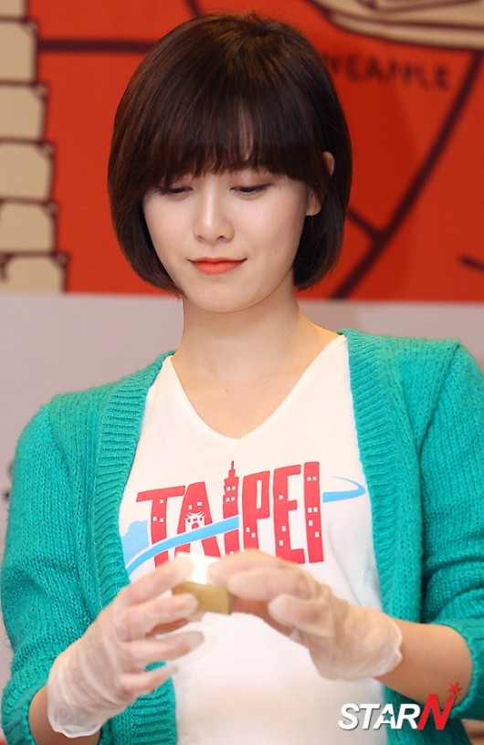 배우 겸 영화감독 구혜선이 29일 오전 서울 중구 소공동에 위치한 롯데호텔 서울점에서 진행된 2013년 새 여행태마 'FUN TAIPEI 아름다운 여행' 소개 간담회에 참석해 파인애플 케이크를 만들고 있다.