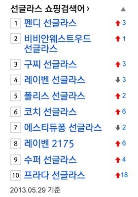소비자들이 특정 제품을 평가할 때 직접적인 경험보다는 그 브랜드가 갖고 있는 평판에 의존한다는 사실을 확인할 수 있는 사례로 잘 알려진 펩시콜라와 코카콜라의 맛 테스트 조사결과가 있다. 이 테스트는 실제적인 혜택과 가치보다도 단지 그 브랜드가 가지고 있는 평판으로부터의 정보를 더 중요하게 생각하고 있다는 소비자의 생각을 여과없이 보여줬다. 이처럼 브랜드는 소비자의 구매 결정을 촉진하는 매력적인 요소가 되기도 한다. 한 포털사이트의 실시간 검색 순위를 통한 5위까지의 선글라스 브랜드를 알아봤다.