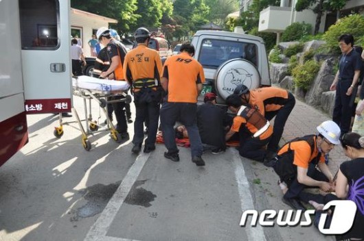 오후 5시30분께는 장제동 한 아파트 7층 난간에 있던 B씨가 주차돼 있던 차위로 떨어져 인근 병원으로 이송돼 치료를 받고 있다.