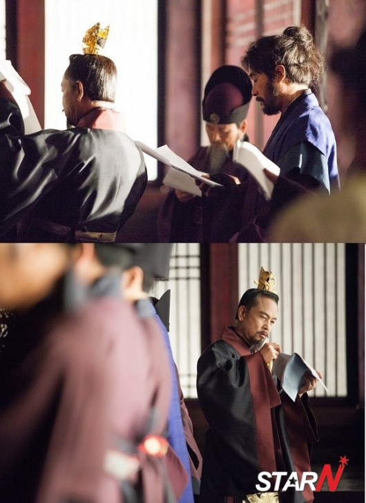 공개된 사진 속에는 극 중 영류왕과 연개소문으로 맞붙는 김영철과 최민수가 상남자 카리스마와 포스를 자아내고 있다.