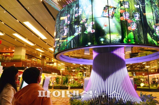 LG전자는 싱가포르 창이공항 제 1터미널에 미디어조형물 '소셜 트리(Social Tree)'를 설치했다고 18일 밝혔다.