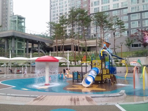 가장 눈에 띄는 점은 단지 내 자리잡은 '어린이 물놀이터'(사진)다. 남양주시에 기부채납한 시설로, 주말에는 인근 지역 어린이들과 가족 등 400~500명이 몰리기도 한다는 것이 금호건설 측의 설명이다.