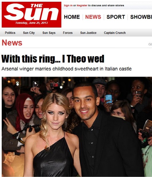 축구선수 시오 월콧(24·아스널)이 '품절남' 대열에 합류했다.