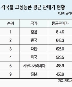 6월 30일 시장조사업체 가트너가 발표한 보고서에 따르면 지난해 국가별 프리미엄(고성능) 휴대폰 평균 판매가(ASP)에서 한국은 643.3달러(73만6000원)로 조사 대상 48개국 가운데 2위를 차지했다. 1위는 홍콩으로 814.6달러로 조사됐다.