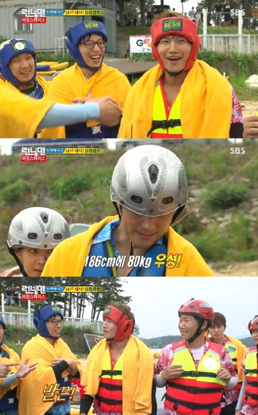 정우성과 하하, 개리가 함께 팀으로 이뤄 유재석을 7m 이상 띄우는데 성공하자 상대팀 멤버인 김종국은 “세 명이 무거워서 그렇다. 대체 정우성은 몸무게가 어떻게 되느냐?”라고 캐물었다.