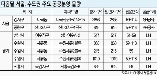 다음 달 한국토지주택공사(LH)와 SH공사가 예정하고 있는 공공분양 물량이 서울과 수도권 주요 입지에 공급돼 관심을 끌고 있다.