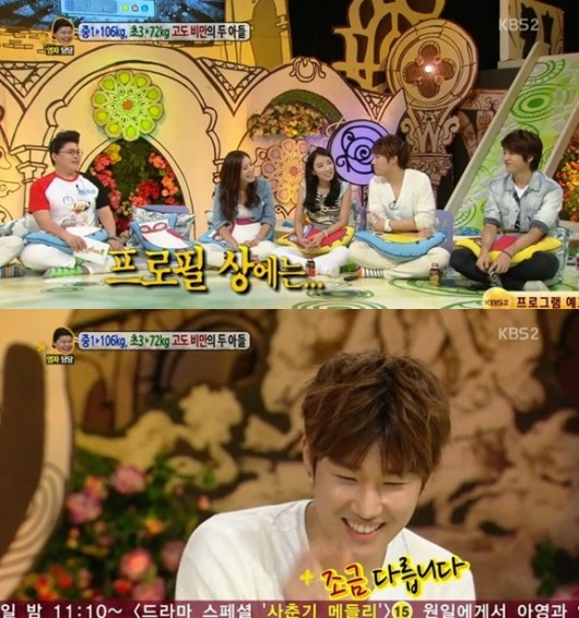 이날 고도 비만인 두 아들 때문에 고민이라는 김미영 씨의 사연이 소개됐고 이에 MC들은 성규에게 “가장 살 쪘을때가 있었느냐”라고 물었다.